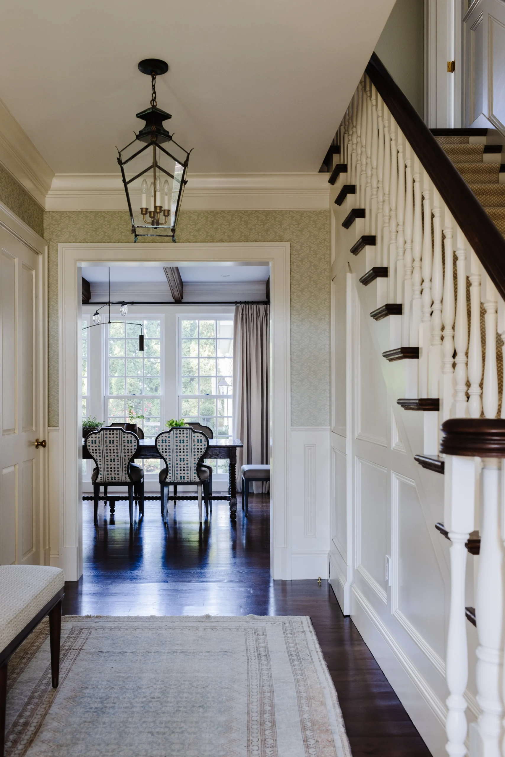 For our longtime clients’ second home retreat, we reimagined this Newport, RI residence with a timeless aesthetic that moves beyond the typical coastal style. Nestled among historic homes in the heart of Newport’s downtown, the design embraces rich hues and a historically inspired palette, paying homage to the city’s Gilded Age grandeur. A thoughtful mix of modern furnishings and vintage finds strikes the perfect balance between old and new. Working with the home’s strong architectural bones, our scope included full furnishings and decoration, as well as key renovations such as a reconfigured third floor, a new primary bath, upgrades to the kitchen and butler’s pantry, and the transformation of the unfinished basement into a functional living space.